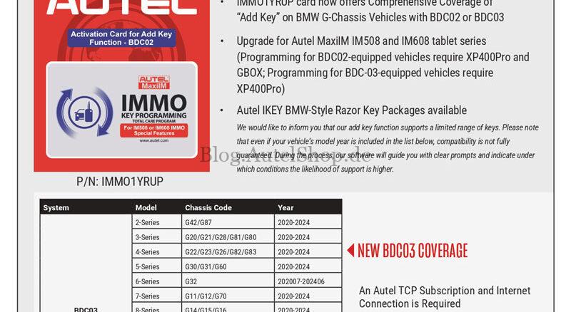 AUTEL has launched a major immobilizer programming upgrade, extending its powerful “BMW G-Chassis Add Key” functionality to cover vehicles equipped with the BDC03 module (2020-2024 model years). This expansion allows professional … Continue reading Autel Adds BDC03 Support: Program Keys for 2020+ BMW G-Series