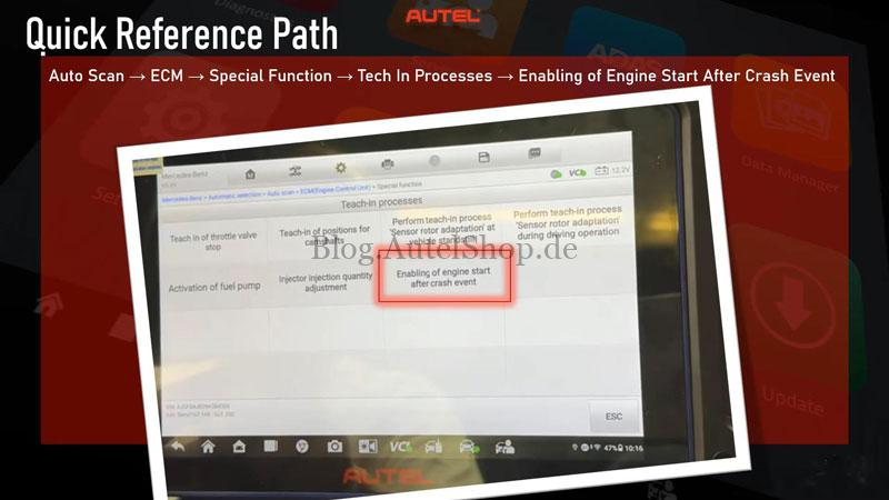 - Use IM608: Auto Scan > ECM > Special Functions > Tech-in processes > Enabling of enginestart after crash event to clear crash lock.
