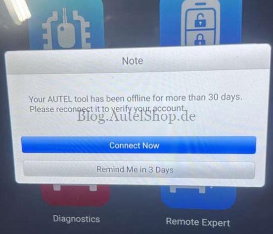 Q: Why does the tablet show an “Your AUTEL tool has been offline for more than 30 days. Please reconnect it to verify your account” prompt?
