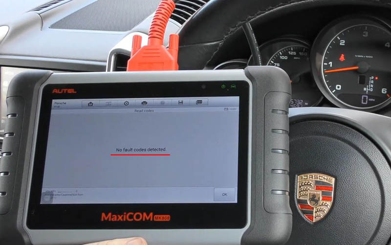 We have the tool plugged into the diagnostic port. So we’re going to click on “Diagnostics” and select our manufacturer which is Porsche. We can either automatically select your vehicle or you can manually select it. So if you click on “Manual Selection”, it would just go through motors of selecting your specific vehicle alternatively. You can just click on “Automatic Selection”, click on “Read” and it should automatically find exactly what vehicle you are in. It finds the VIN number, and just tell us it’s a 2013 model Porsche Cayenne which is correct.