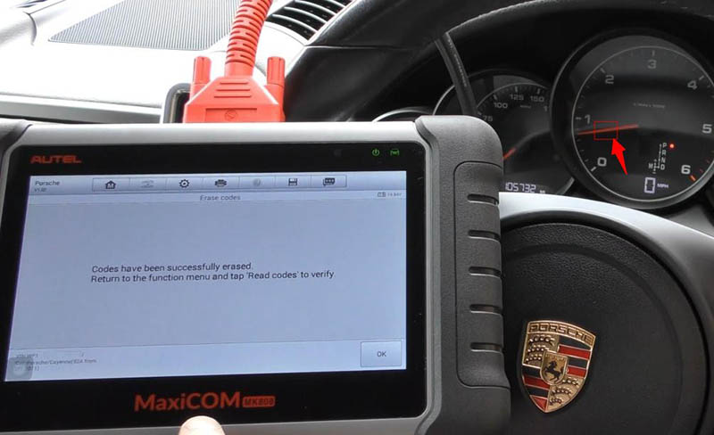 Actually I’ve previously diagnosed this fault and put a new mass air flow sensor in, but we still got the fault code. So what we need to do now is telling ECU that we have put a new put in. Go back and click on “Erase codes”, there the check engine light just goes away.