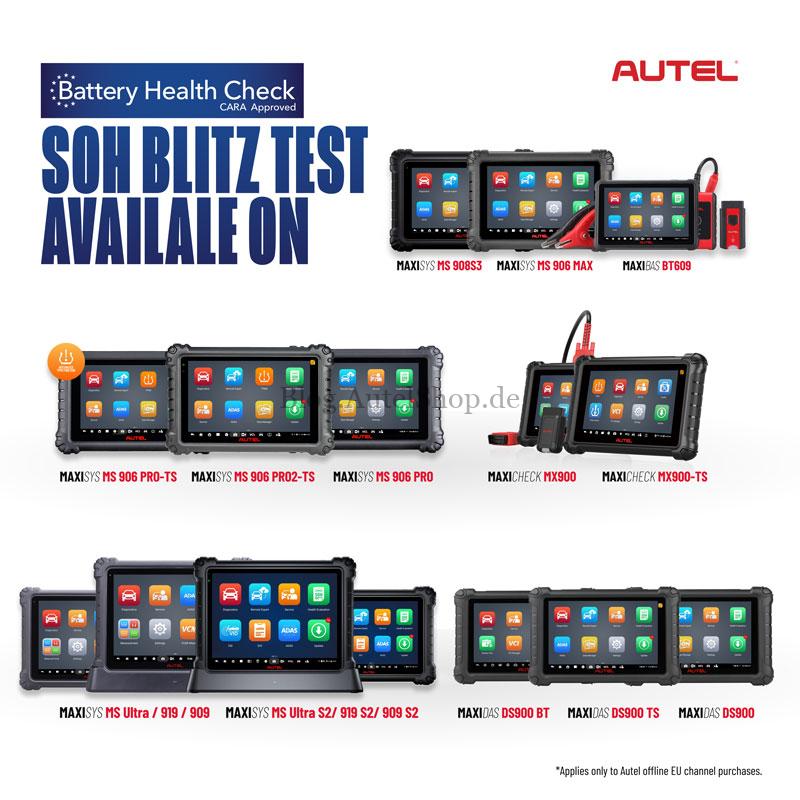 Maximize your ROI with Autel’s complimentary EV battery health tool. The CARA-certified Autel SOH Blitz Test is now officially free of charge for all Maxisys Ultra S2 EV, Ultra EV, MS909S2 EV, MS909EV, MS919S2 EV and MS919 EV owners.