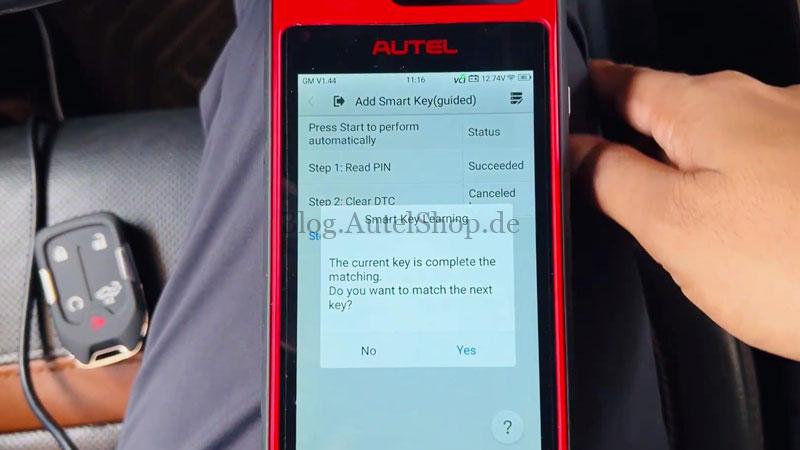 • Once the screen indicates the current key matching is complete, select No if you do not have additional keys to program.