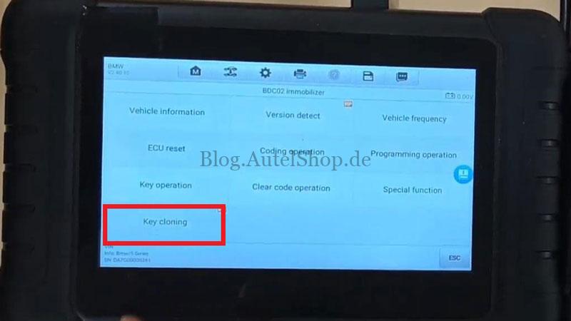 - Go to Control Unit > BDC02 immobilizer > Key cloning.