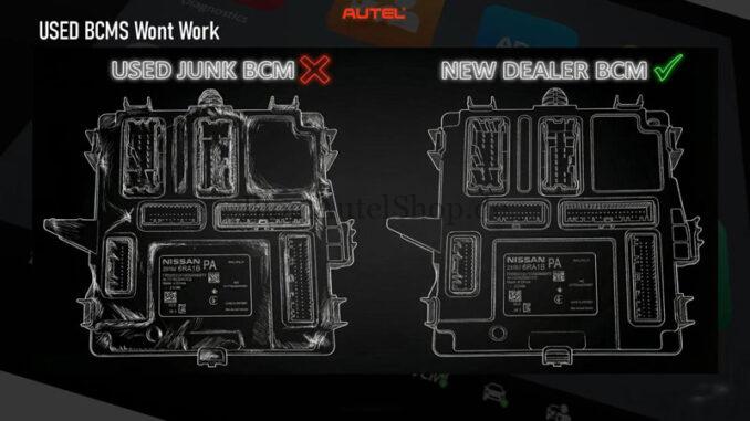 On Nissan vehicles, the VIN field in the BCM can only be written once. A used BCM already has a VIN stored from its previous vehicle. Autel tools (and most others) cannot overwrite it.