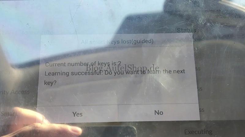 - Once the screen confirms “Learning Successful” (Current keys: 1), select Yes to learn the next key.
