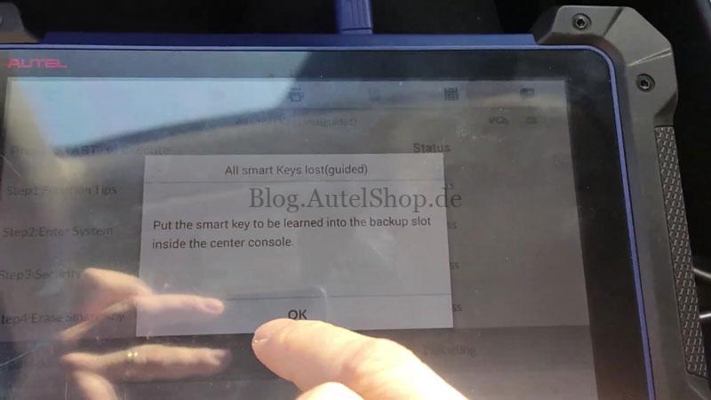 - Second Key: Remove the first key, insert the new blank key into the slot, and press OK.
