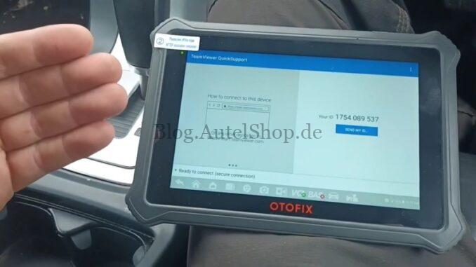 Unlike traditional bulky scanners, the OTOFIX D1 is designed like a modern, slim tablet with a vibrant orange finish.